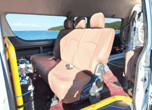 また、ハイエーススーパーロングの車両は、ゆったりとした室内空間を持つ大型のハイエースを採用しています。この車体の大きさと安定性により、高速道路などでの横揺れや振動を大幅に軽減。長時間の移動や体調が優れない日の移動でも、お客様にリラックスして目的地までお過ごしいただけます。